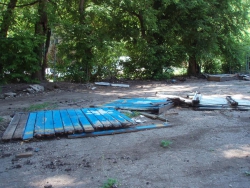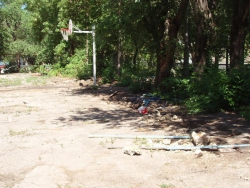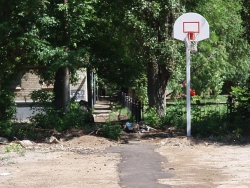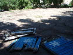 Сейчас на месте уличного спортсооружения - пустырь с обломками досок и дырами в асфальте, где раньше располагались стойки крепления. Уцелело только баскетбольное оборудование. Однако, как удалось выяснить, это - не подготовка места под очередную парковку, которые и так заполонили все дворы Саратова.